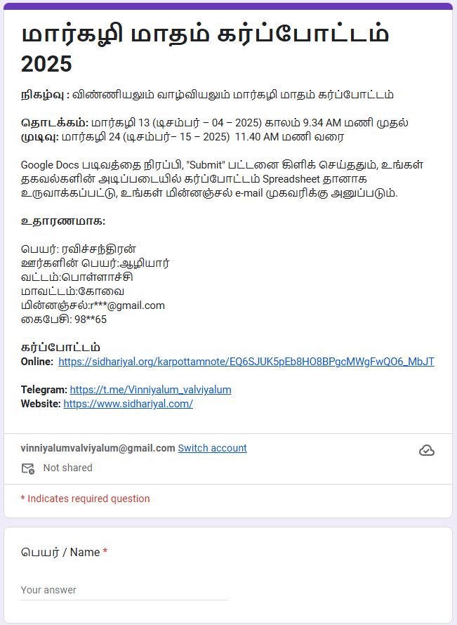 மார்கழி – 13 (Dec-04 2025) – Google Spread Sheet இல் இணைவோம்