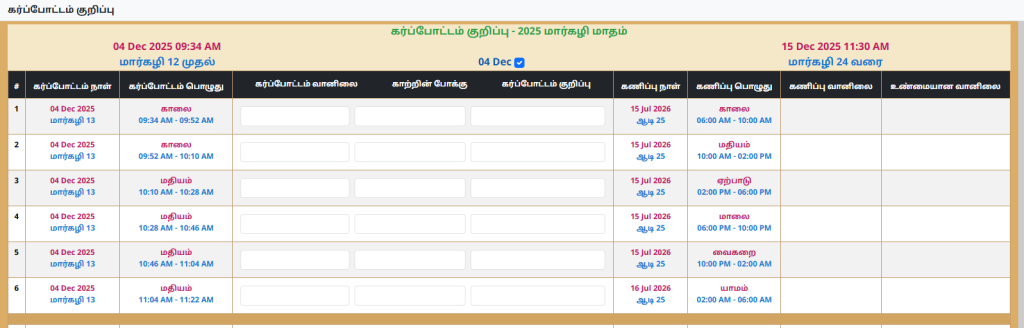 மார்கழி – 13 (Dec-04 2025) – Google Spread Sheet இல் இணைவோம் (கர்ப்போட்டகாலம்)