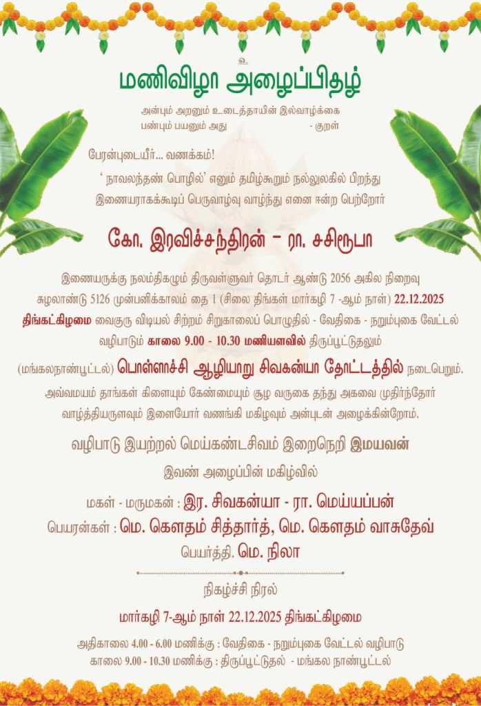 - அனைவருக்கும் இனிய தமிழர் திருநாள் மற்றும் பொங்கல் திருநாள் வாழ்த்துக்கள் December 21, 2024